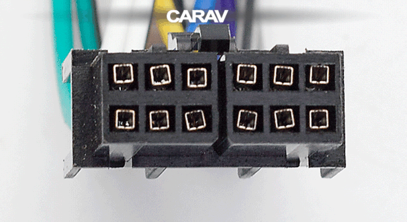 12-pin connector (female) <---> CARAV <---> ISO (male) Power & Speakers