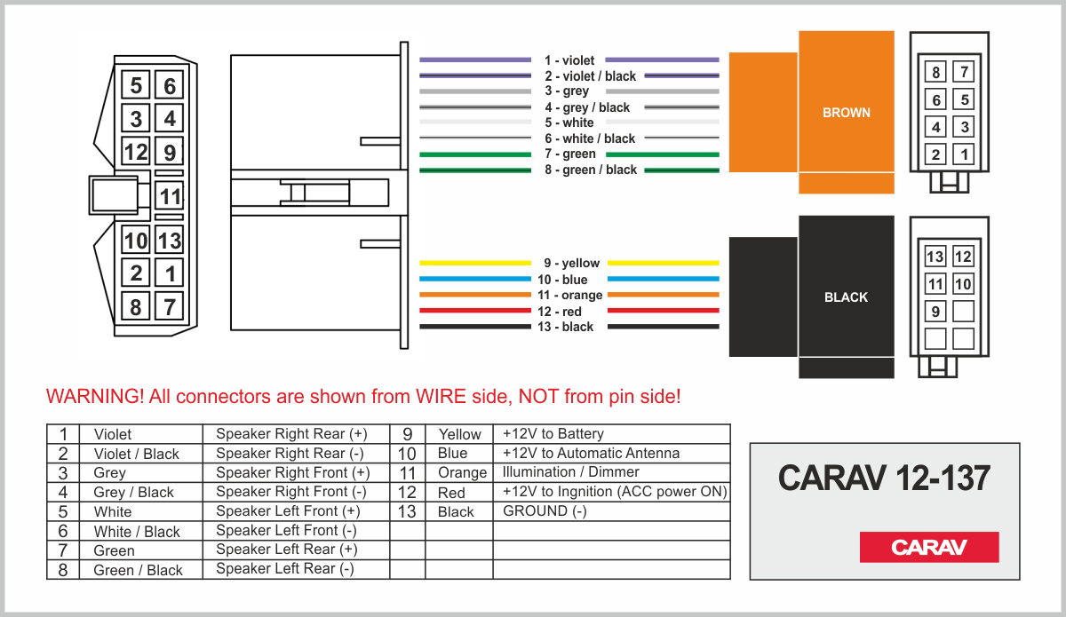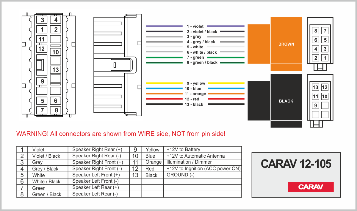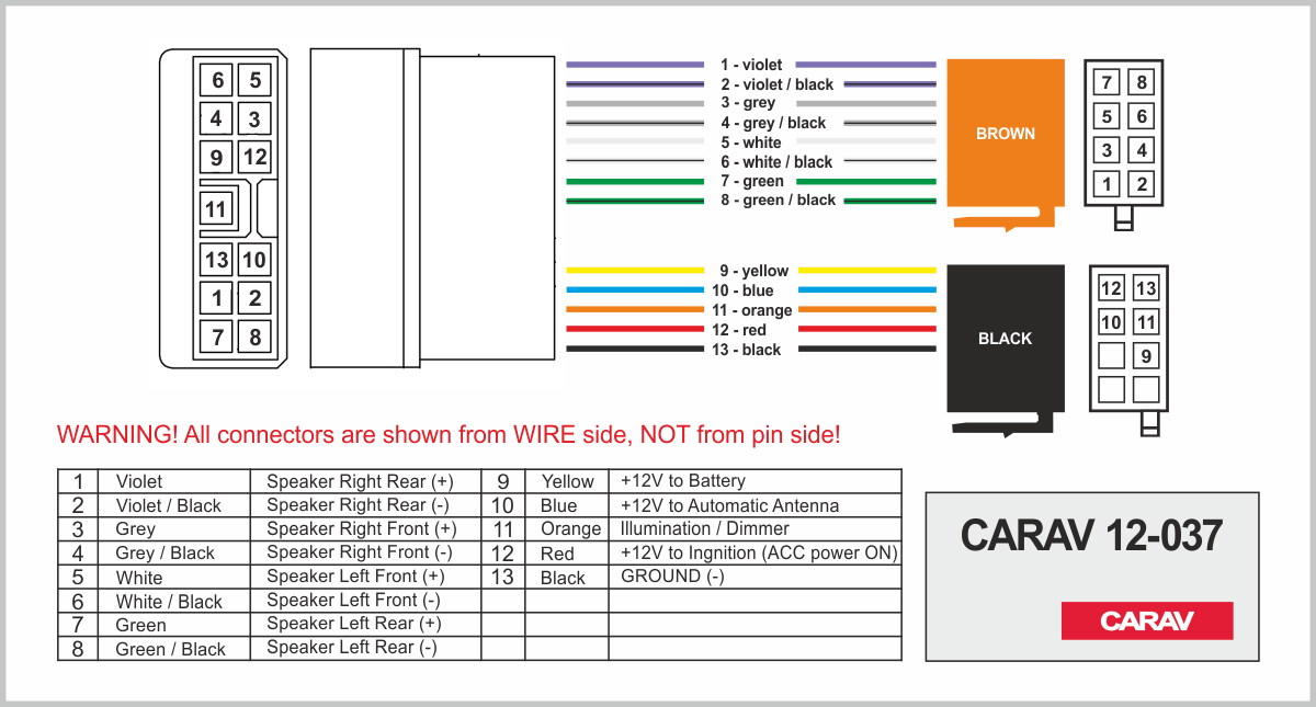 Connector OEM (female) <---> CARAV <---> ISO (male)
