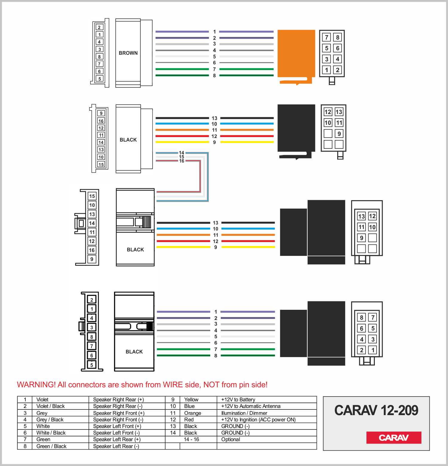 Connector OEM (male) + ISO (female) <---> CARAV <---> Connector OEM (female) + ISO (male)