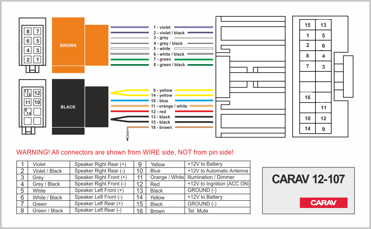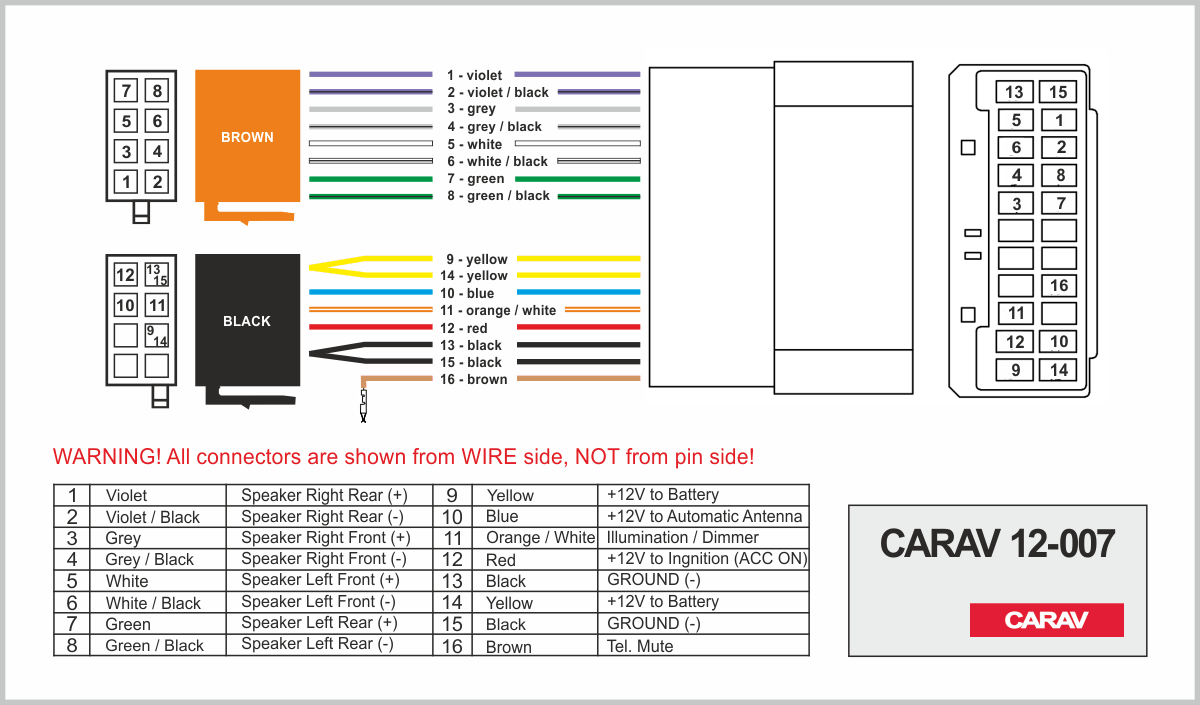 Connector OEM (female) <---> CARAV <---> ISO (male)