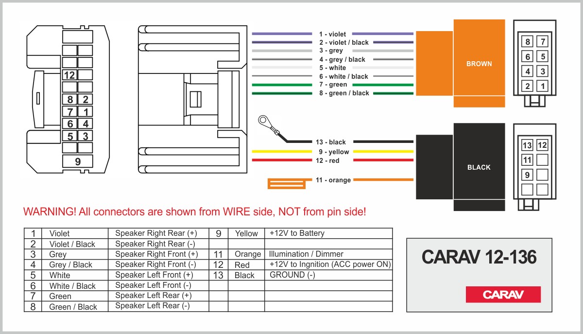 Connector OEM (female) <---> CARAV <---> ISO (male)